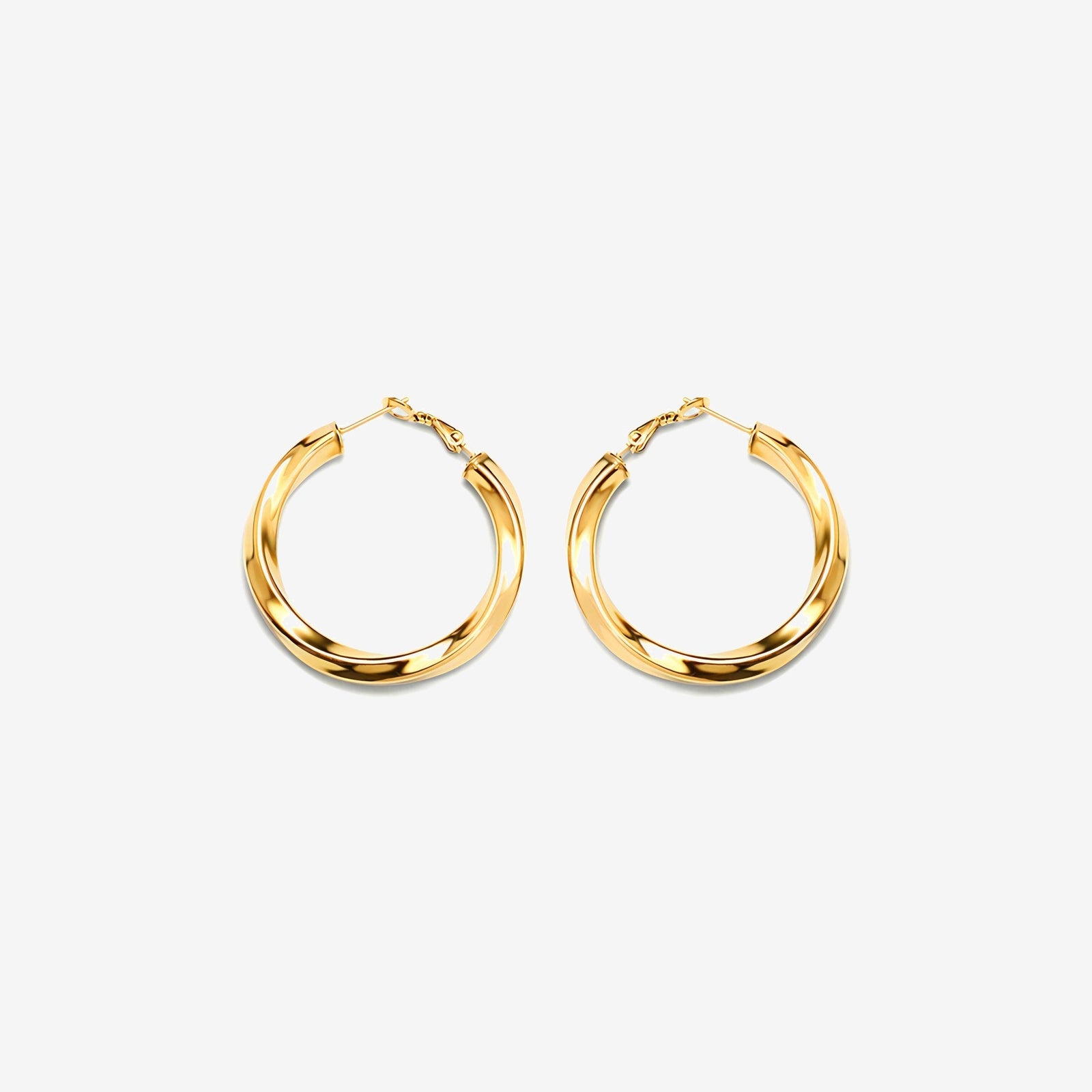 Classic twisted hoops featuring a smooth polished finish and hollow construction. Built to last, these versatile earrings bring authentic style to any age or aesthetic.