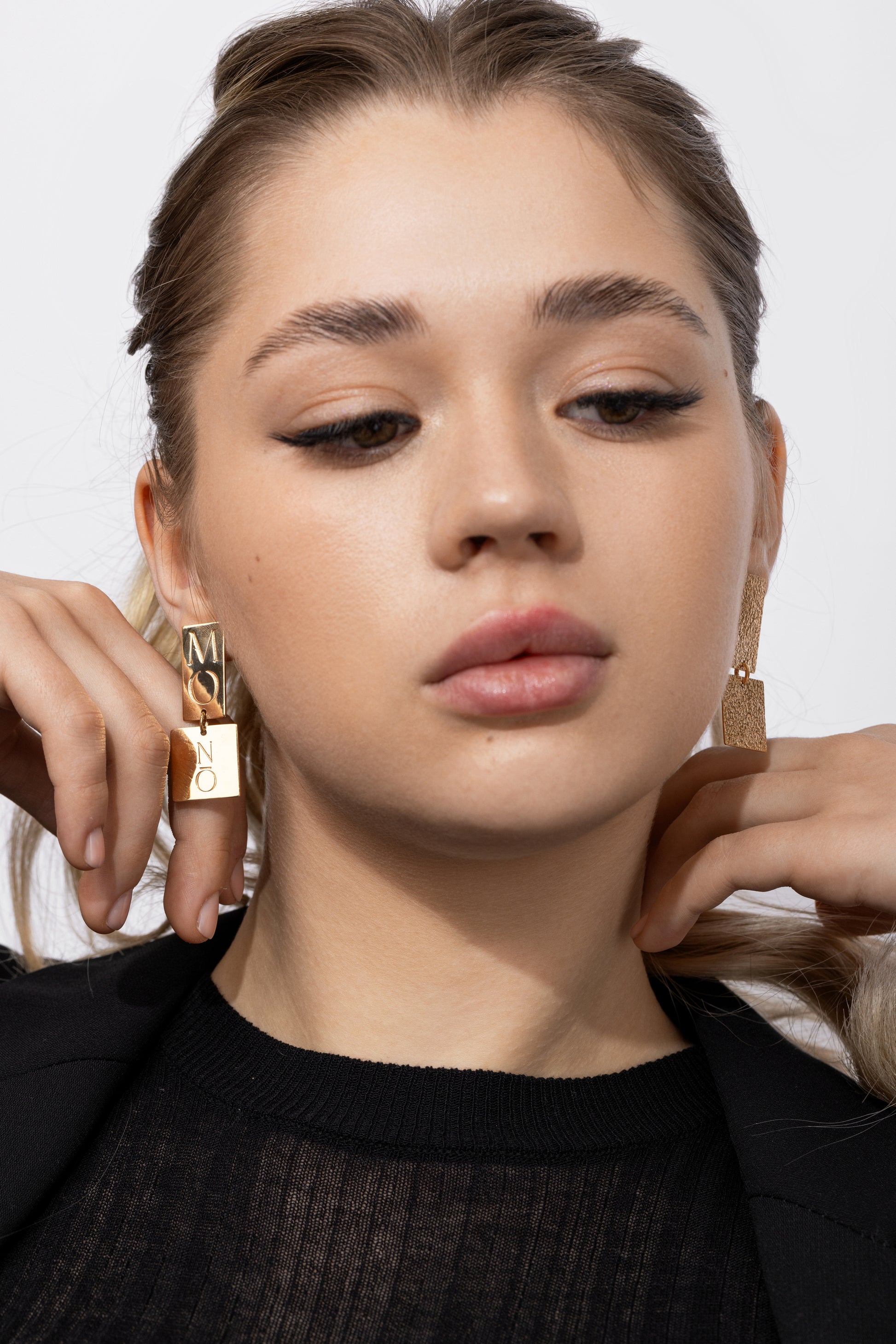 The Vero Earrings are bold and modern, with one polished side and one textured side. Heavy and substantial, these solid 18K gold earrings are designed to make a striking statement, offering a luxurious and powerful presence.