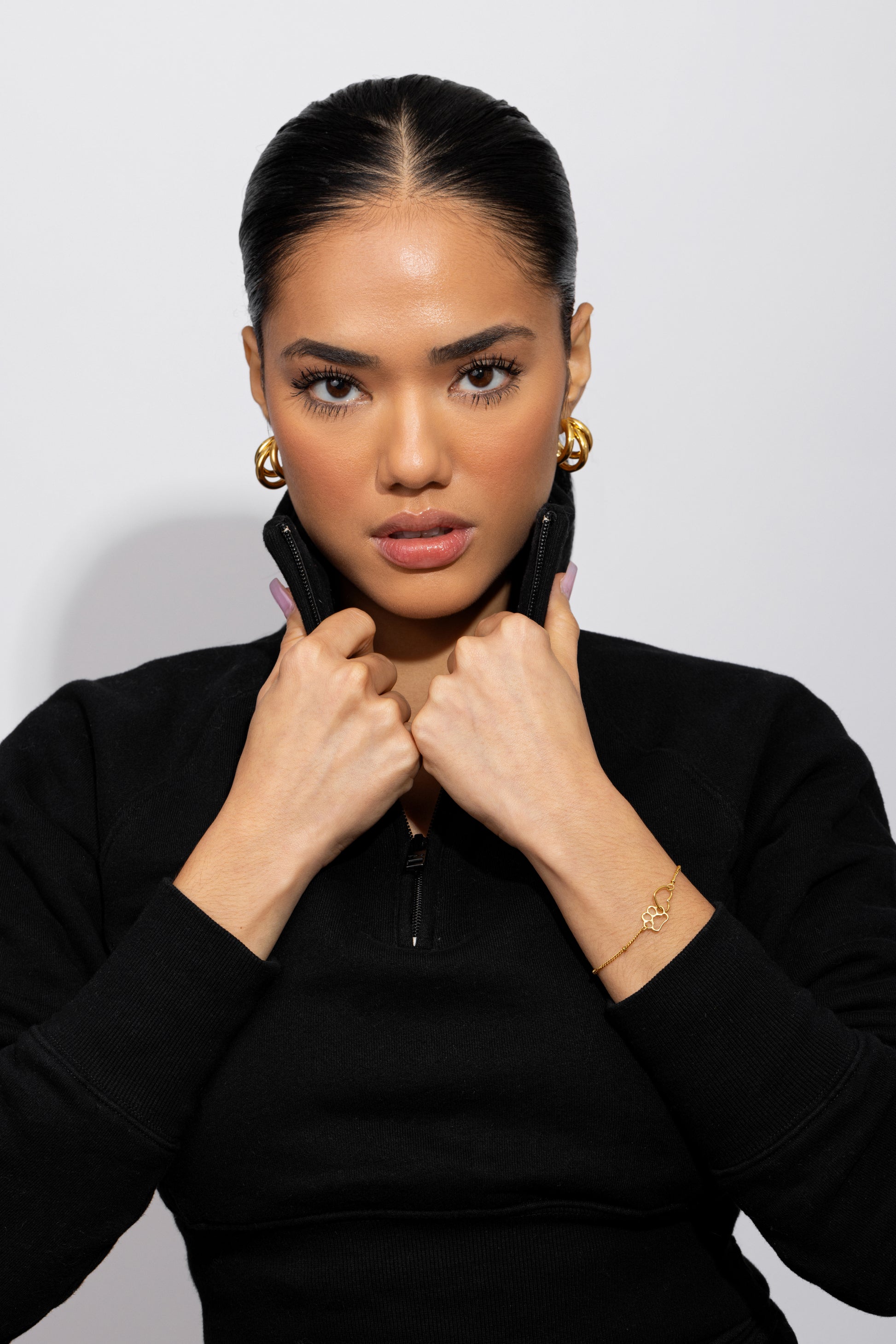 Make a statement with these triple hoop gold earrings. A timeless piece that adds polish and shine to your everyday wardrobe.
